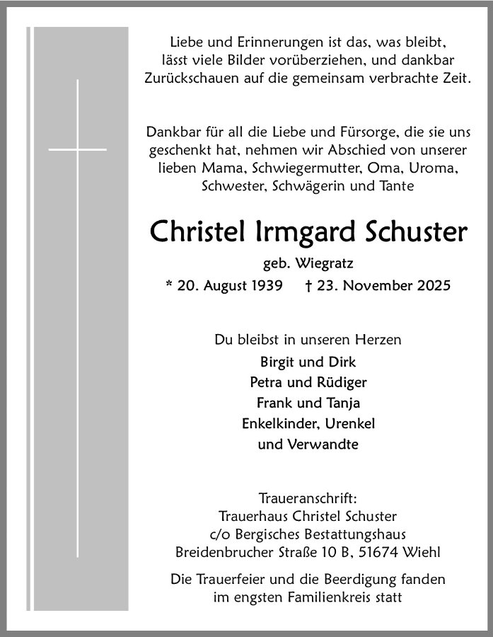 Christel Schustergestorben am 23. November 2025