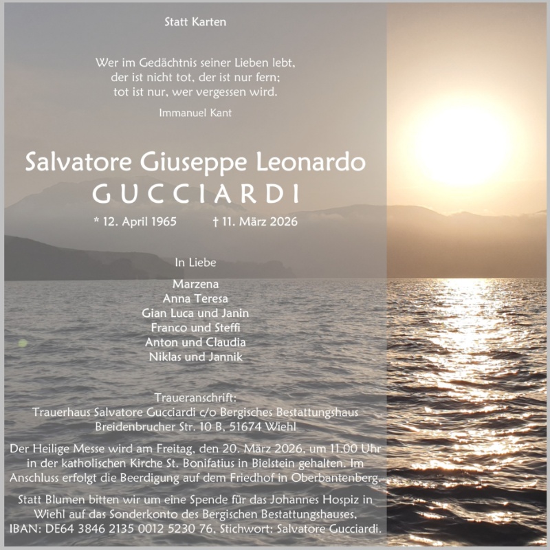 in dieser Zeit des Schmerzes wünschen wir Ihnen Kraft, den Verlust im Kreise Ihrer Liebsten zu verarbeiten. Als Zeichen unserer Anteilnahme und des Gedenkens entzünden wir dieses erste Licht. Möge diese Gedenkseite Ihnen helfen, Erinnerungen zu teilen und so das Andenken gemeinsam wachzuhalten.